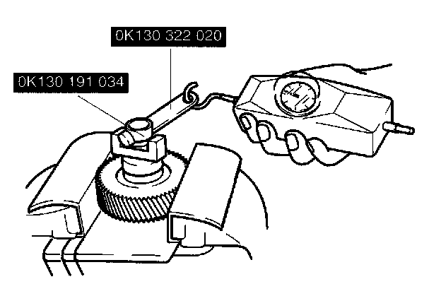 b. Attach SST (OK130 191 034) and spring scale or torque wrench and measure preload while tightening locknut.