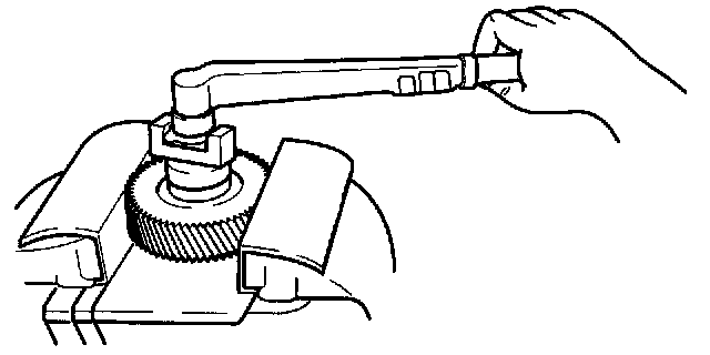 3. Secure idler shaft in a vise with SST (OK130 191 034) and tighten locknut to lower limit of tightening torque.