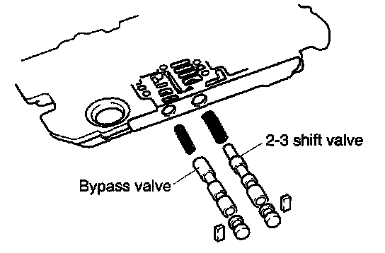 2. Insert 2-3 shift spring, 2-3 shift valve and plug. Secure them with stop pin.