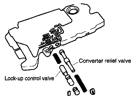 3. Insert converter relief valve and converter relief spring. Secure them with spring retainer.