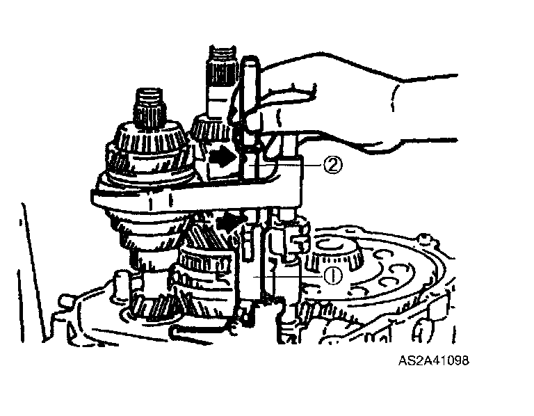 1. Shift to 2nd gear and position shift fork and shift rod assembly as shown.