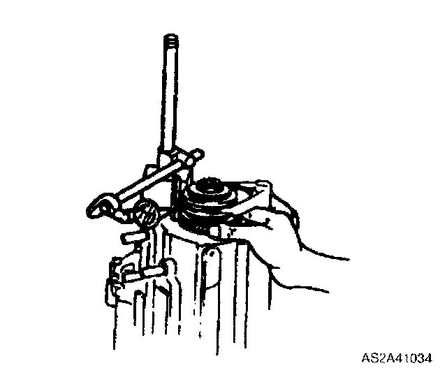 4. Set each clutch hub sleeve to neutral position, and tap shift rod from above so that detent ball goes into center groove (of three grooves in control end).