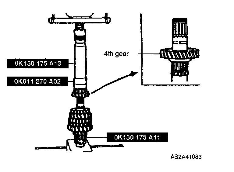 1. Install secondary 4th gear and bearing by using SST(OK130 175 A13/OK011 270 A02/OK130 175 A11).