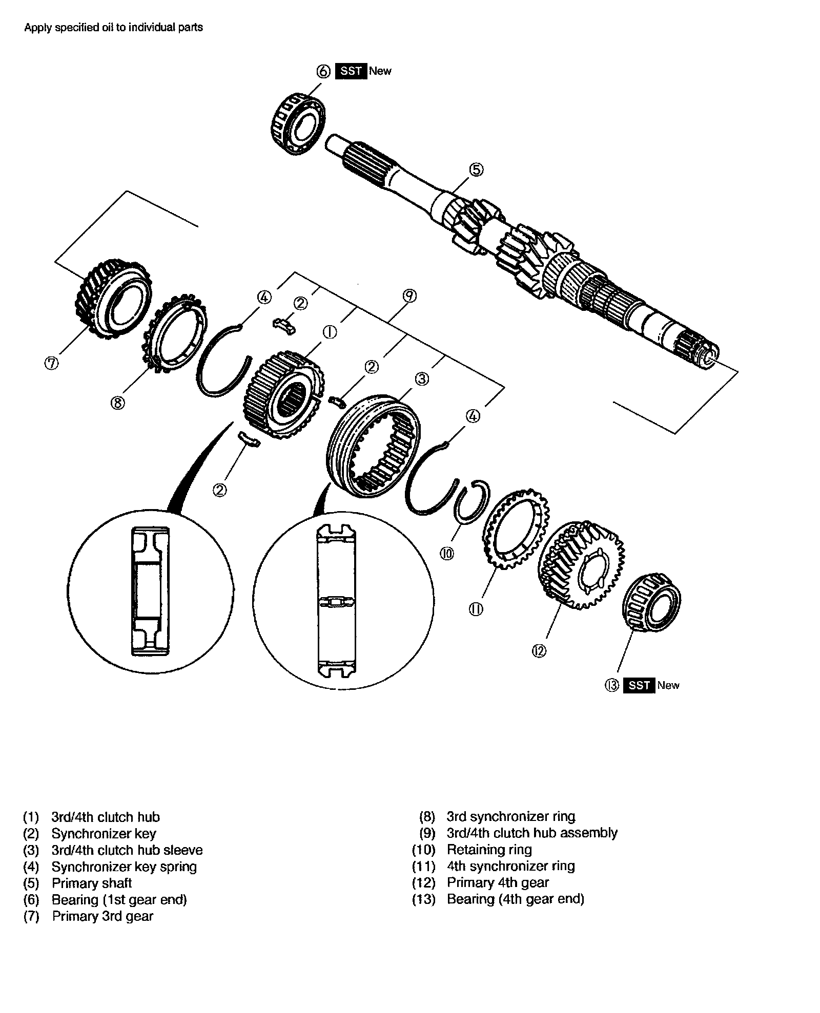 4th synchronizer ring, primary 4th gear and bearing (4th gear end)