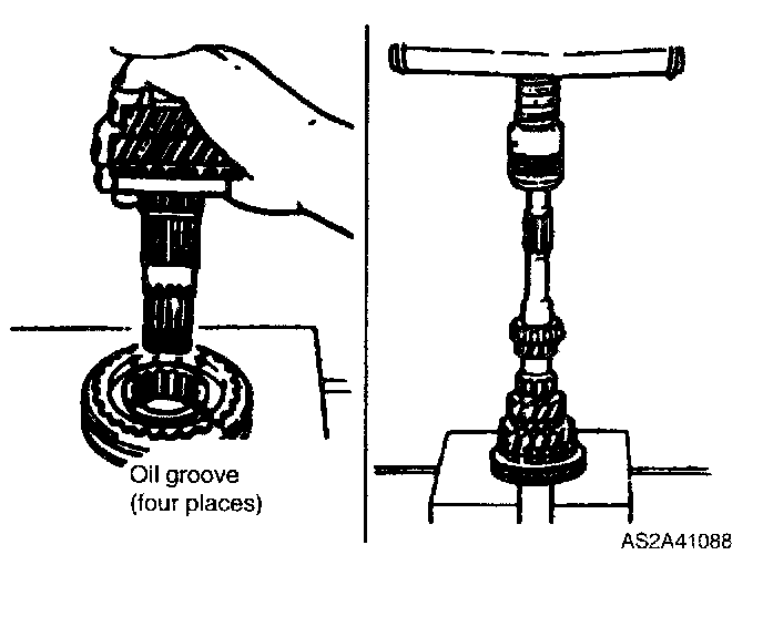 1. Install 4th synchronizer ring, 4th gear, and new bearing by using SST(OK130 175 008/OK011 270 A02).