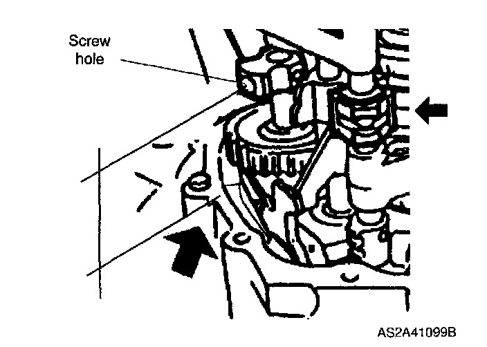 3. Align end of interlock sleeve with control lever (arrow), and face reverse idle shaft screw hole in direction shown in figure.