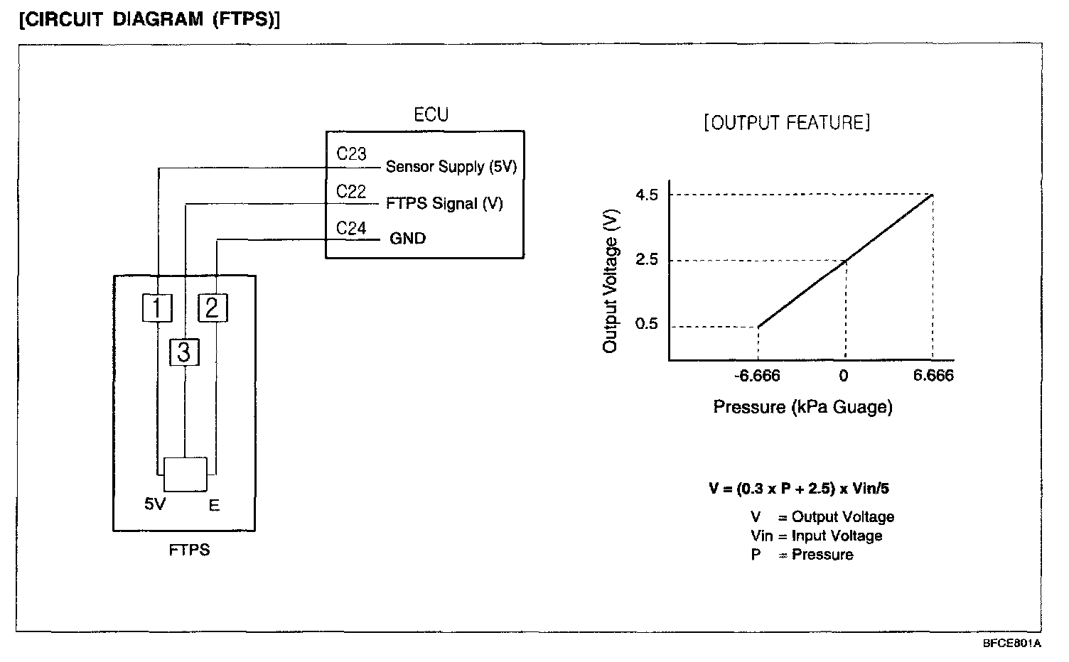FUEL TANK PRESSURE SENSOR (FTPS)The fuel tank pressure sensor is a pressure sensitive variable resistor. It measures the change of pressure in the fuel tank and monitors leakage detection. It is used to close the evaporative system and observes tank pressure respectively with canister close valve.