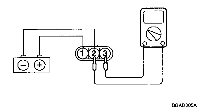 Connect the negative (-) terminal of a 3V power supply to terminal 2 of the power transistor; then check whether there is continuity between terminal 3 and terminal 2 when terminal 1 and the positive (+) terminal are connected and disconnected.
