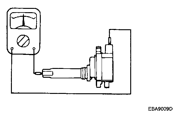 Measure the resistance between the high-voltage terminals of the ignition coil.