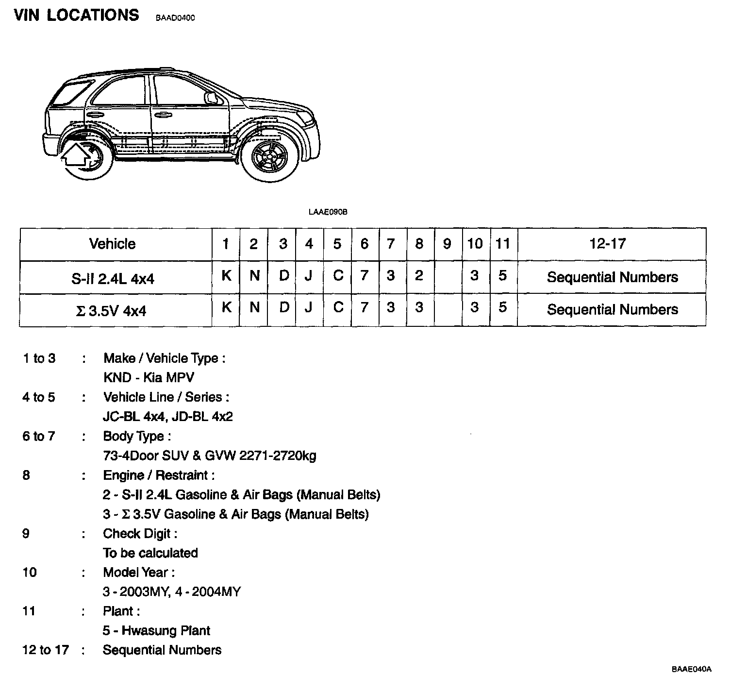 VIN Locations:
