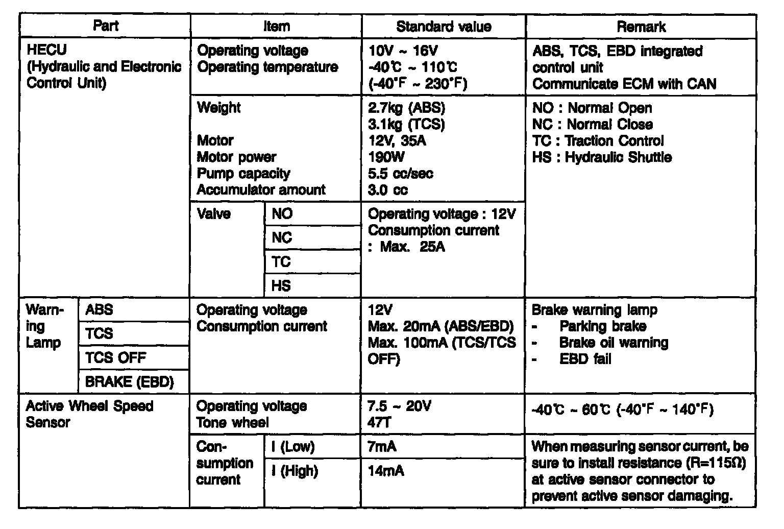 SPECIFICATIONS (ABS&TCS)