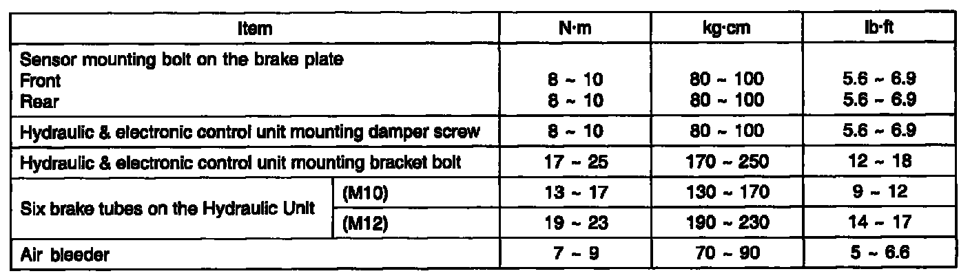 TIGHTENING TORQUE (ABS&TCS)