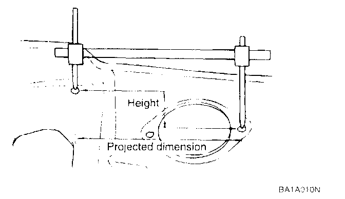 1. These are the dimensions measured when the measurement points are projected into the reference plane, and are the reference dimensions used for body alterations.