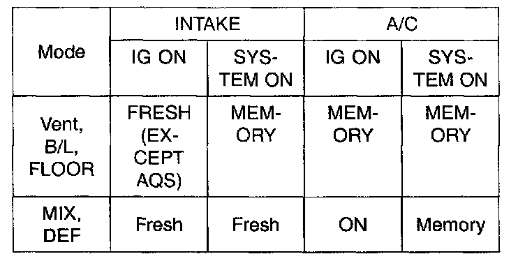 - Enable to select A/C ON/OFF & Intake button at MIX <-> DEF changing