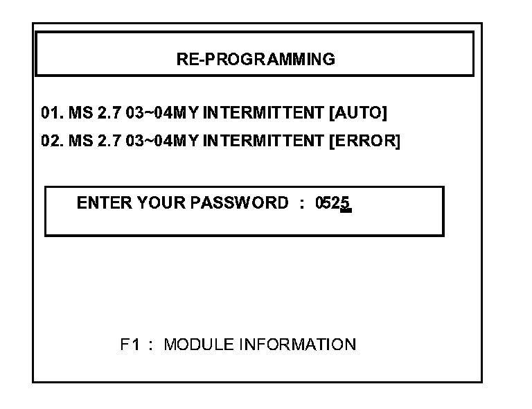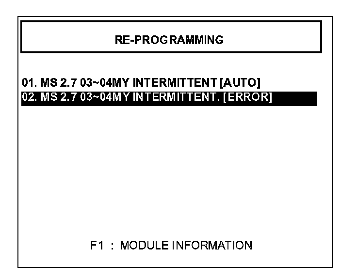 4. Select Option "02. MS 2.7 03~04MY INTERMITTENT [ERROR]" for manual reprogramming and press ENTER.