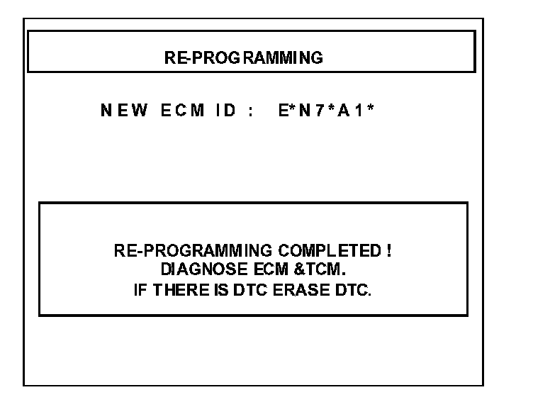 8. When the "REPROGRAMMING COMPLETED" message is displayed, check the new ECM ID displayed on the Hi-Scan Pro screen to verify that the correct ECM software has been downloaded. Refer to the ECM SPECIFICATIONS in this TSB for the ECM ID listing. Turn the Hi-Scan Pro OFF to complete the download procedure.