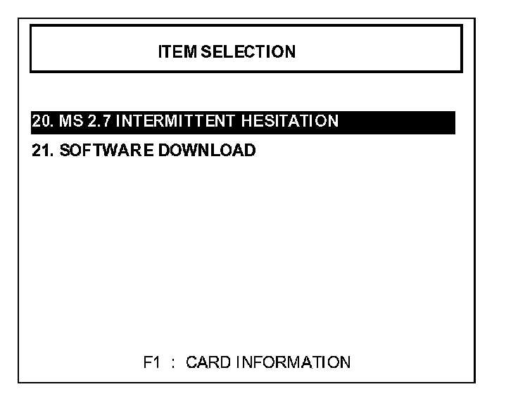6. Select Option "20. MS 2.7 INTERMITTENT HESITATION" and press ENTER.