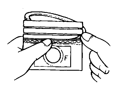 4. Install upper oil ring onto piston. Ring may be installed with either face upward.