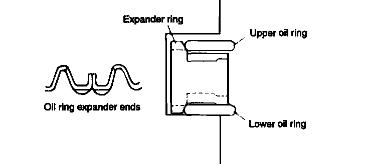 1. Apply clean engine oil to the oil ring expander and upper and lower oil rings.