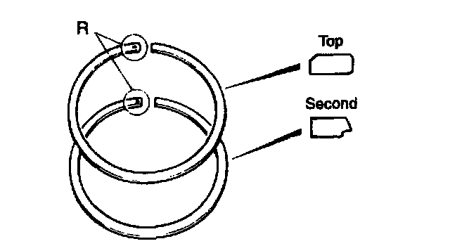 NOTE: Top ring and second ring should be installed with "R" or "Y" mark facing up.