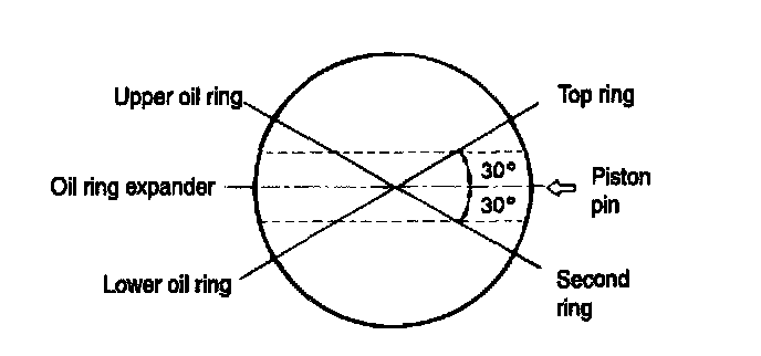 8. Align piston ring gaps as shown.
