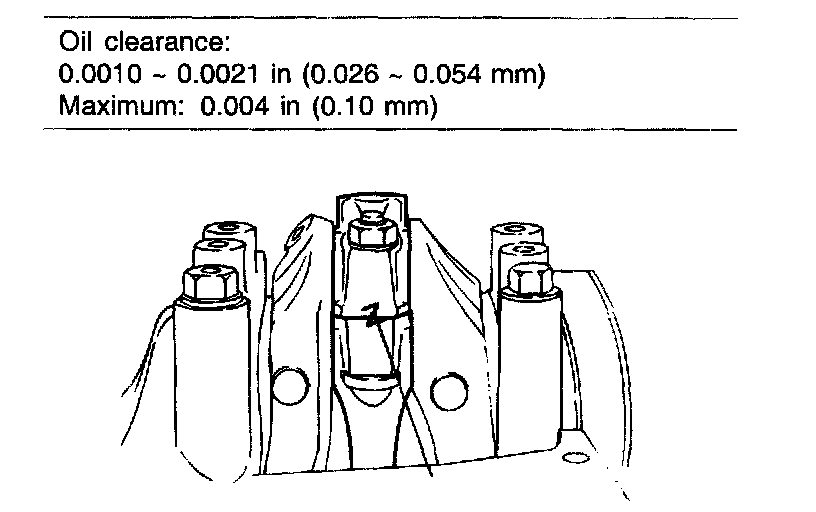 21. If oil clearance exceeds maximum oil clearance specification, grind the crankshaft and use undersized connecting rod bearings.