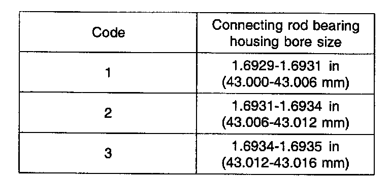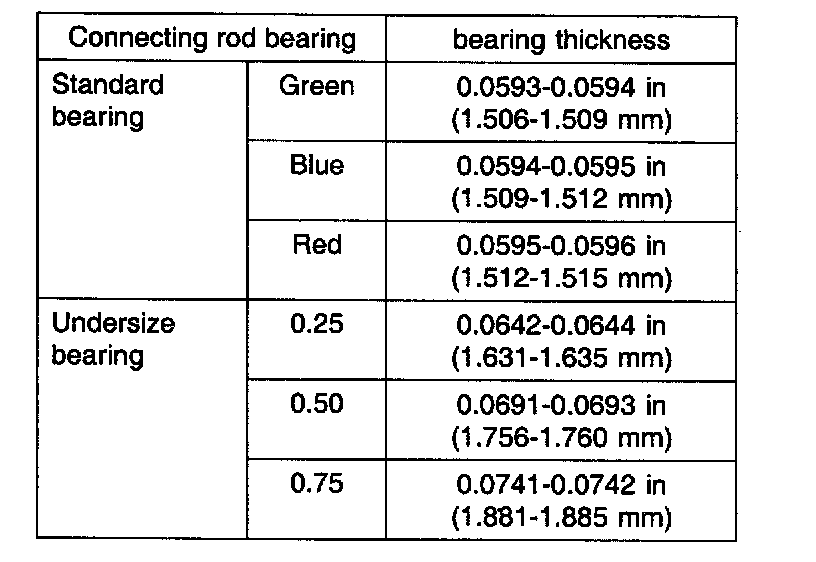 1) Connecting rod bearing selection table