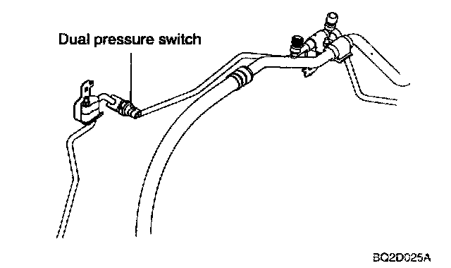 The dual switch is composed a low pressure and high pressure switches. The low pressure switch will be turned off to stop compressor operation it refrigerant pressure is low. The high pressure switch will be turned off to stop compressor operation if refrigerant pressure is too high.