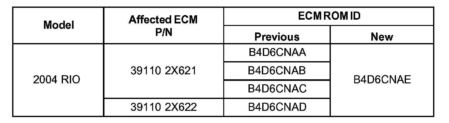 (See the "ROM ID Information Table" for previous and new ECM ROM IDs)