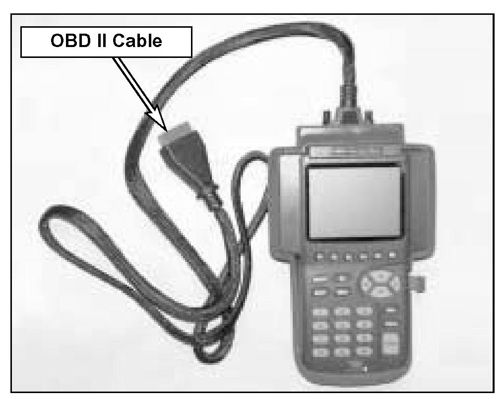 1. Attach the OBD II Data Link Connector (DLC) cable to the Hi-Scan Pro main body and tighten the two screws securely. Remove the current system software card from the Hi-Scan Pro and insert the 32MB blue label reprogramming card into the Hi-Scan Pro top slot.