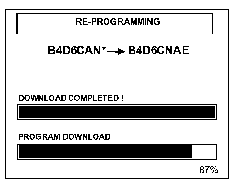 ^ DO NOT turn the ignition key OFF or interrupt the power supply during reprogramming.