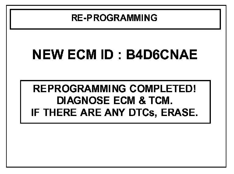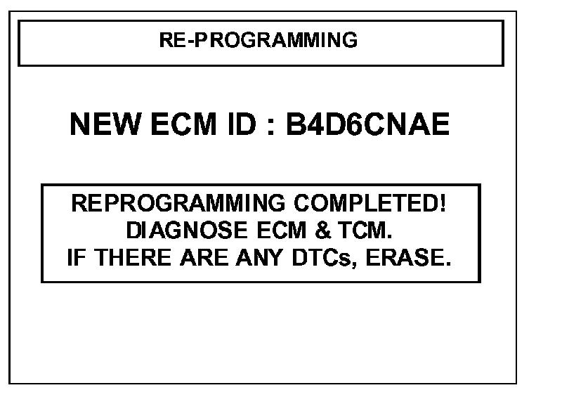 10. When the "REPROGRAMMING COMPLETED" message is displayed, turn the ignition key to the OFF position, wait 20 seconds and then start the engine to check for proper operation.