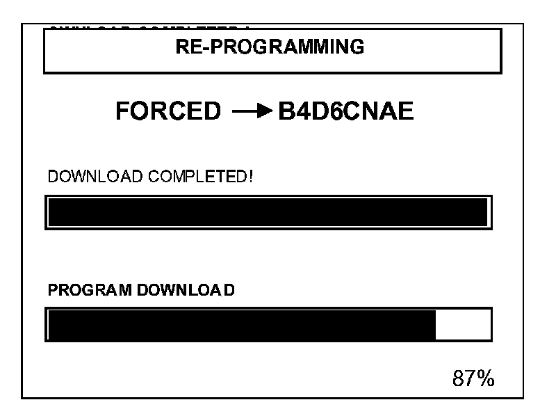 Do NOT interrupt the reprogramming at any time. The ECM may be rendered inoperative if the software does not download completely.