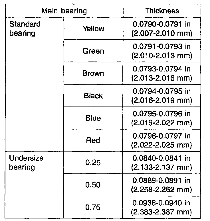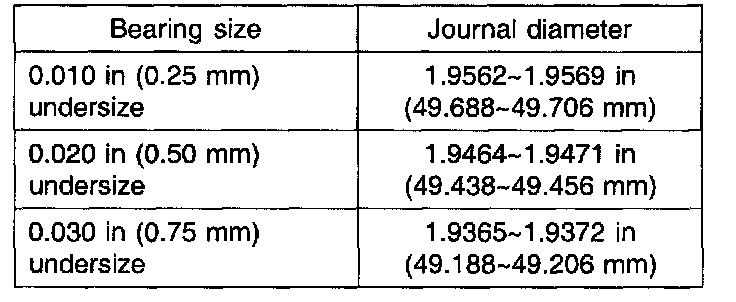 If oil clearance exceeds specification, grind and polish crankshaft and use undersized main bearings.