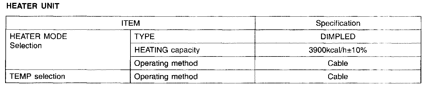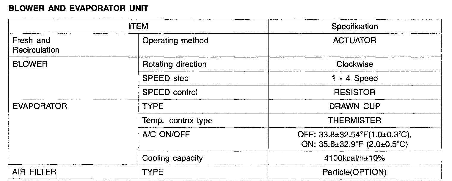 Specification - Blower And Evaporator Unit: