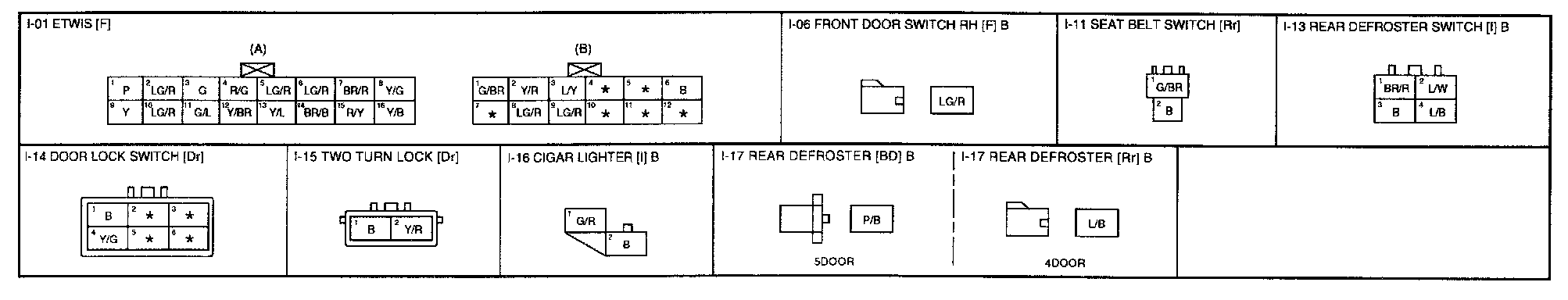 I-1b - Electrical Time & Warning Indication System(ETWIS), Cigar Lighter, Rear Defroster Connectors: