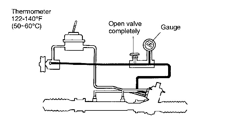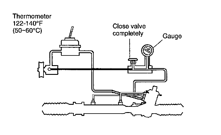 4. Open gauge valve fully. Start engine and turn steering wheel fully left and right to raise fluid temperature to 122 - 140°F (50 - 60°C).