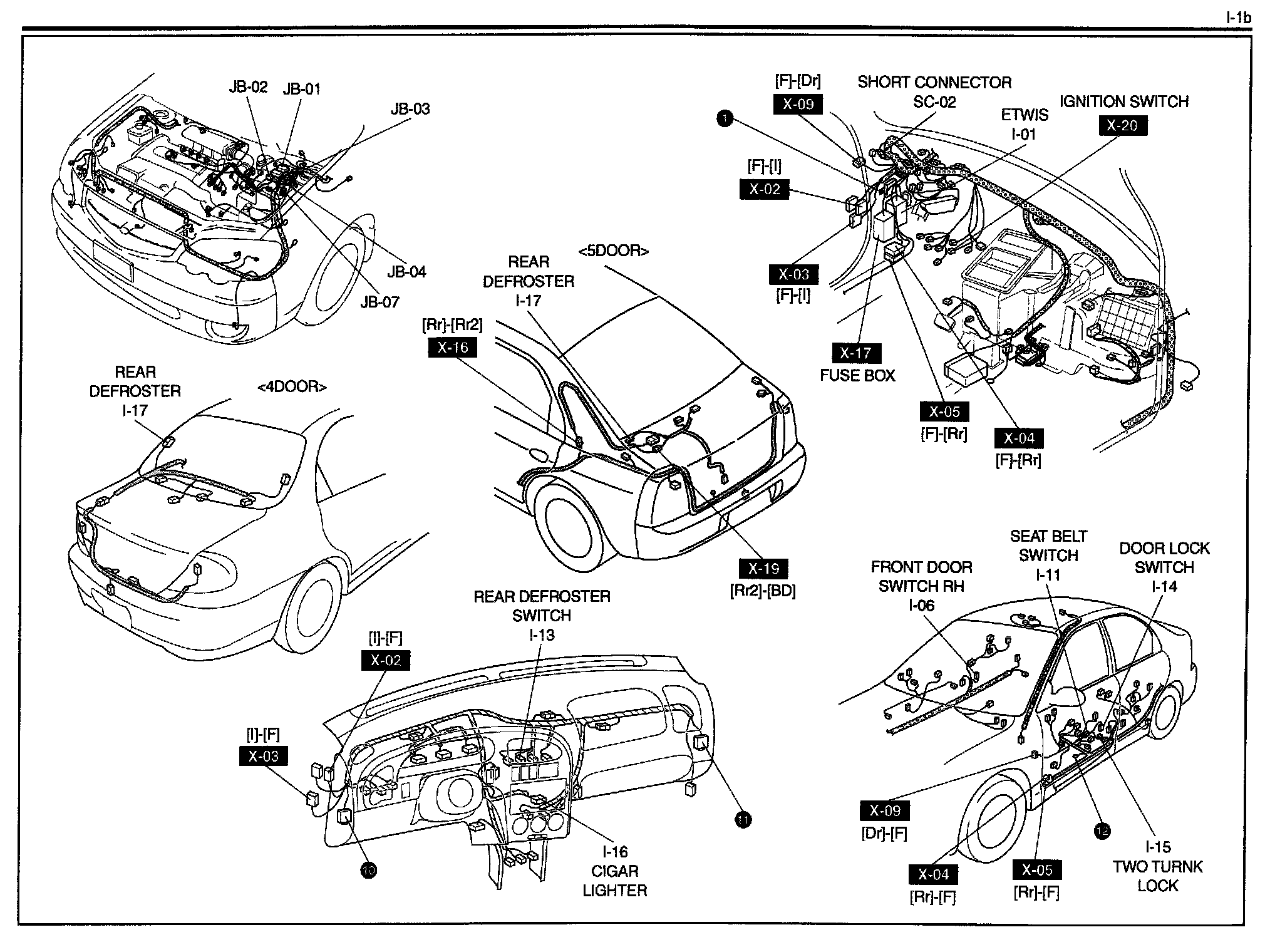 I-1b - Electrical Time & Warning Indication System(ETWIS), Cigar Lighter, Rear Defroster Harness / Connectors Symbols: