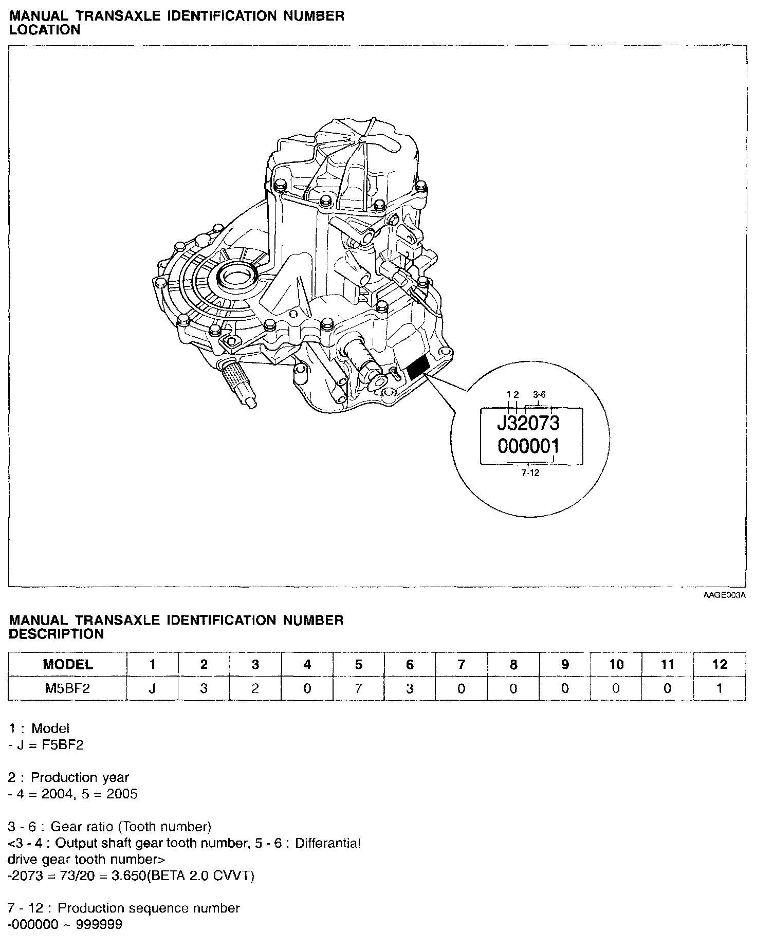 Transaxle Identification Number Location