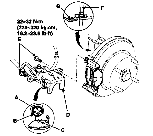6. Install the brake caliper (D).
