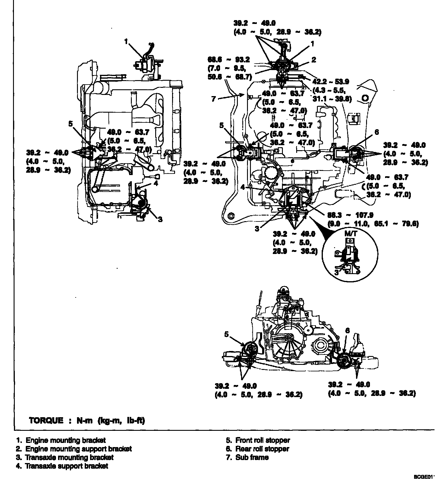 Bolt(B), Nut(C): 49.0 - 63.7 Nm (5.0 - 6.5 kg-m, 36.2 - 47.0 ft. lbs.)