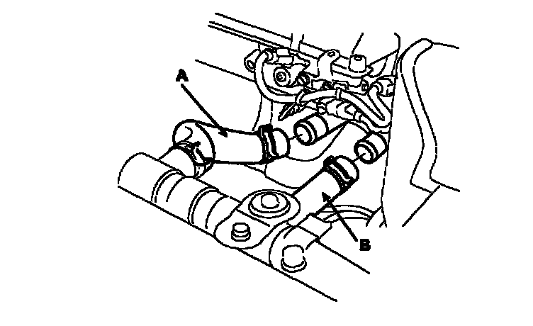 6. Remove the upper radiator hose (A) and lower radiator hose(B).