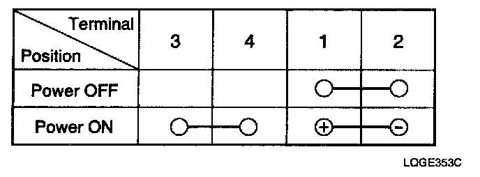 2. There should be no continuity between the No.3 and No.4 terminals when power is disconnected.
