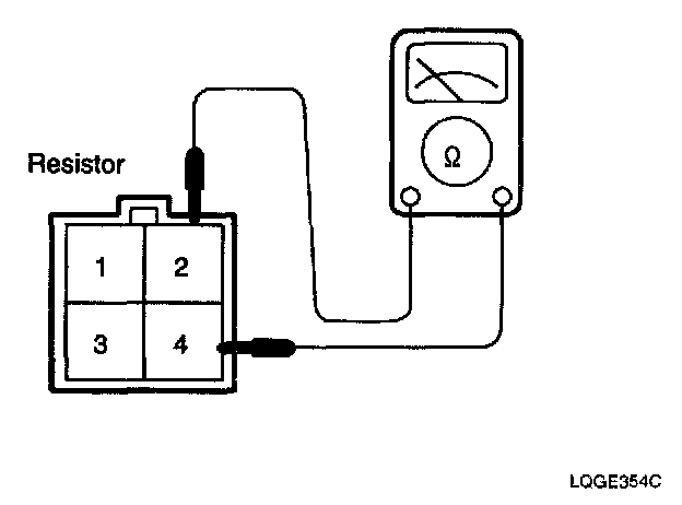 If measured resistance is not within specification, the blower resistor must be replaced. (After removing the resistor)