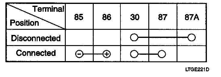 2. There should be continuity between the No.87A and No.30 terminals when power is disconnected.
