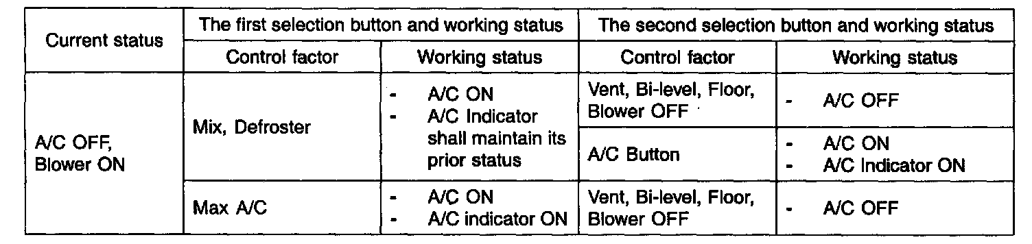 2. With Defroster or MIX in the blower ON mode, It controls with A/C ON and the fresh mode.