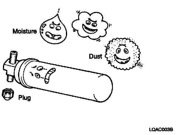 - When removing refrigerant components from a vehicle, cap immediately the components to prevent from the entry of moisture.