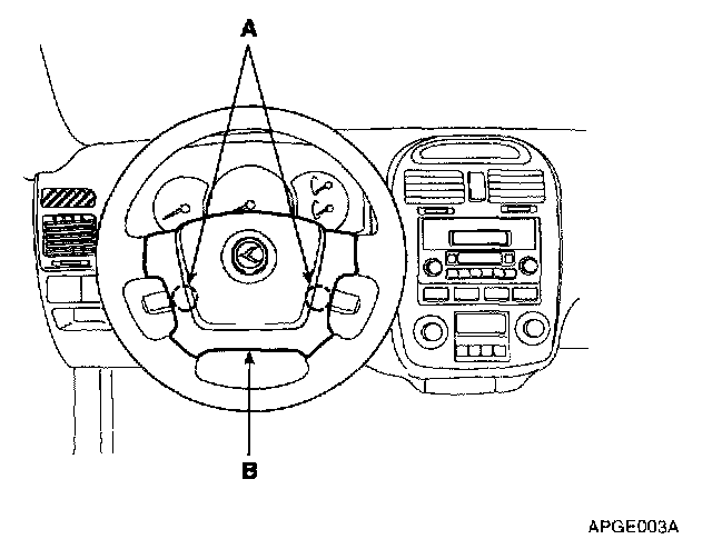 3. Disconnect the horn connector and the air bag module connector, and remove the air bag module (B).