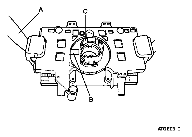 11. Installation the cancel lever (B) to the cancel cam (C) as below figure when replacing the lighting switch (A).