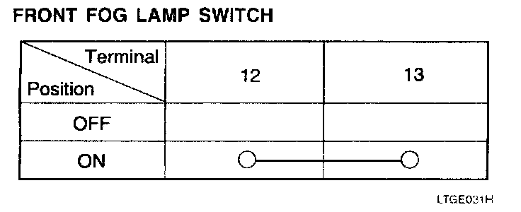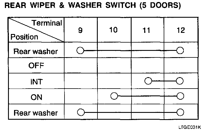 With the multi function switch in each position, make sure that continuity exists between the terminals below. If continuity is not as specified, replace the multi-function switch.